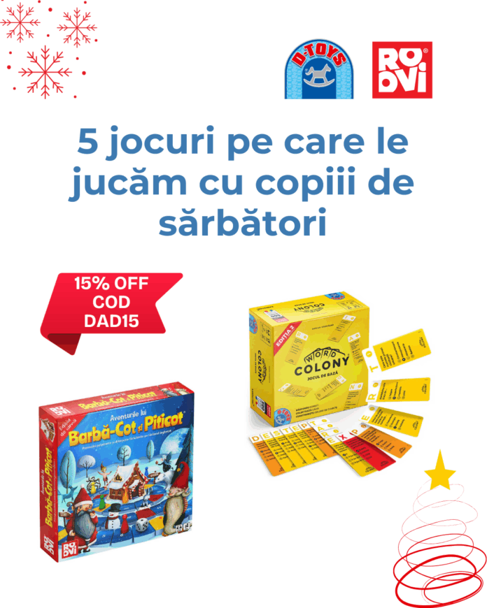 Perioada sărbătorilor este momentul perfect pentru a petrece timp de calitate alături de copii prin joc. Am selectat câteva jocuri care funcționează excelent pentru vârste diferite și care dezvoltă aptitudini esențiale în timp ce copiii se distrează.
