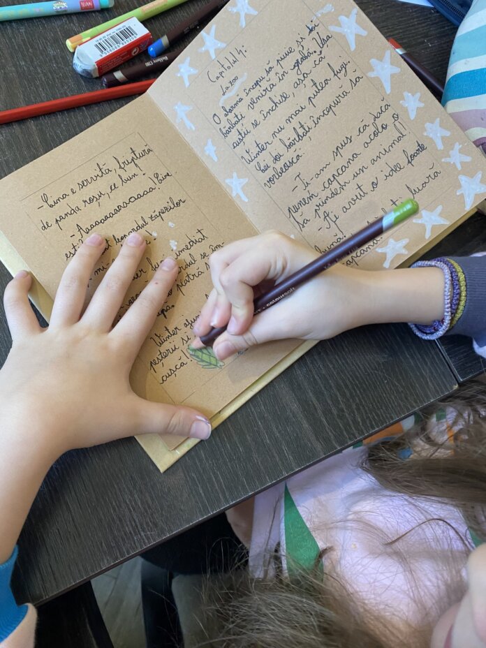 Părinții pot îmbina scrisul cu activitățile creative, cum facem și noi la atelierul de caligrafie aplicată. Acolo vin perechi părinte + copil și le dăm tot felul de misiuni caligrafice: să scrie rețete de poțiuni magice, să își scrie scrisori, semne de carte, tot felul. Vrem ca juniorul să vadă la părinte că merită să investească timp în scris și că pot face prin scris obiecte cu valoare emoțională, care ajută conectarea dintre ei. Dar mult mai greu vin oamenii când e vorba de această abordare versus când e vorba de a corecta scrisul la atelierul de caligrafie funcțională, unde părinții nu participă.