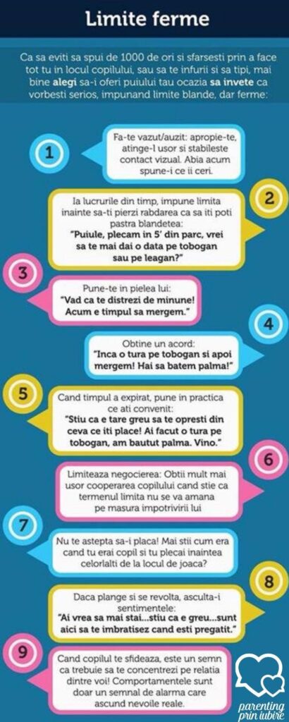 Prietenii noștri de la Parenting prin iubire, prin Alexandra Ilieș, ne vor fi alături printr-o serie de articole utile pe teme de parenting, cu inserturi de infografice practice, din care ne putem inspira. Astăzi povestim despre L I M I T E.